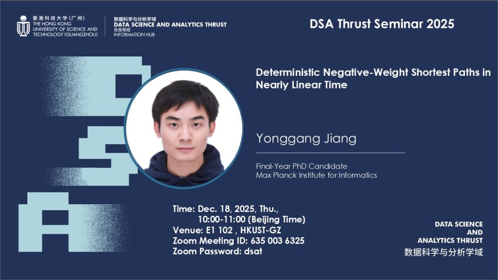 Yonggang Jiang is a final-year PhD candidate at the Max Planck Institute for Informatics, advised by Danupon Nanongkai. His research focuses on fast graph algorithms, with an emphasis on derandomization, parallelization, and distributed computing. His work has appeared extensively in top venues such as STOC/FOCS/SODA. He received the SPAA Distinguished Paper Award and is a Google PhD Fellow.