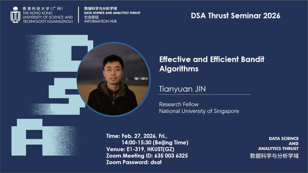 Tianyuan Jin is a Research Fellow in the Department of Electrical and Computer Engineering at the National University of Singapore (NUS). He received his PhD from NUS in 2024 and was awarded the Google PhD Fellowship in 2021. His recent research focuses on the theory of bandit learning. In particular, he is interested in designing algorithms that are both theoretically optimal and practically efficient, especially under real-world constraints such as limited adaptivity and memory. His work spans Thompson Sampling, batched bandits, streaming bandits, and other bandit problems/settings.
